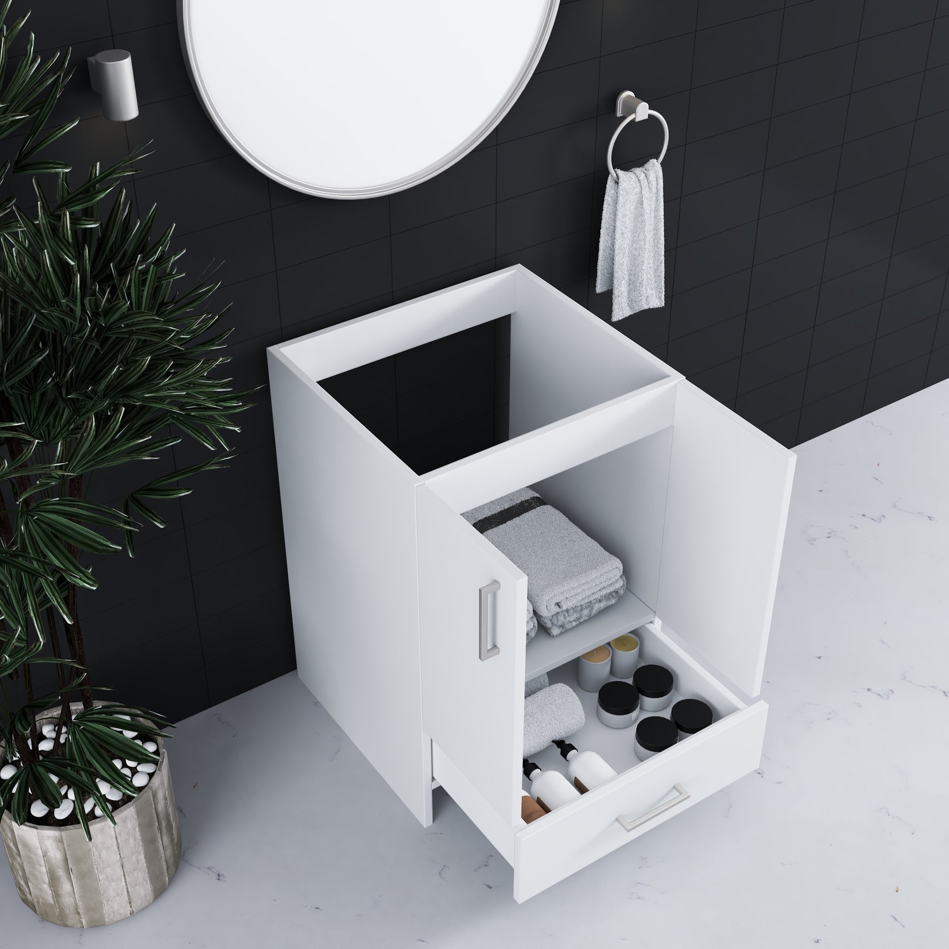 - Silent Operation Drawers: Soft-closing feature for a tranquil, luxurious bathroom experience.