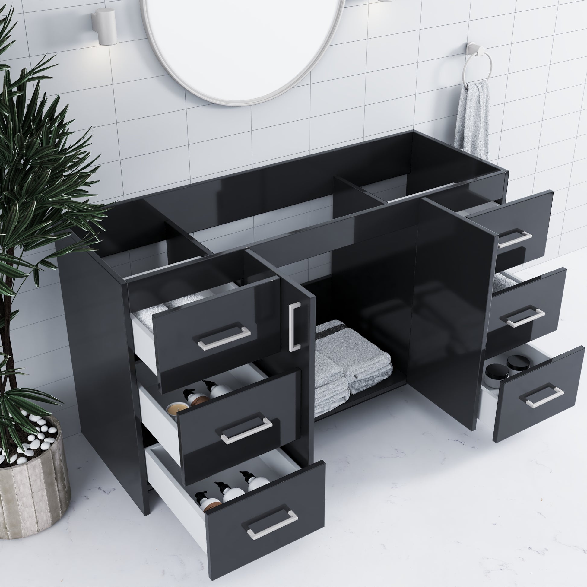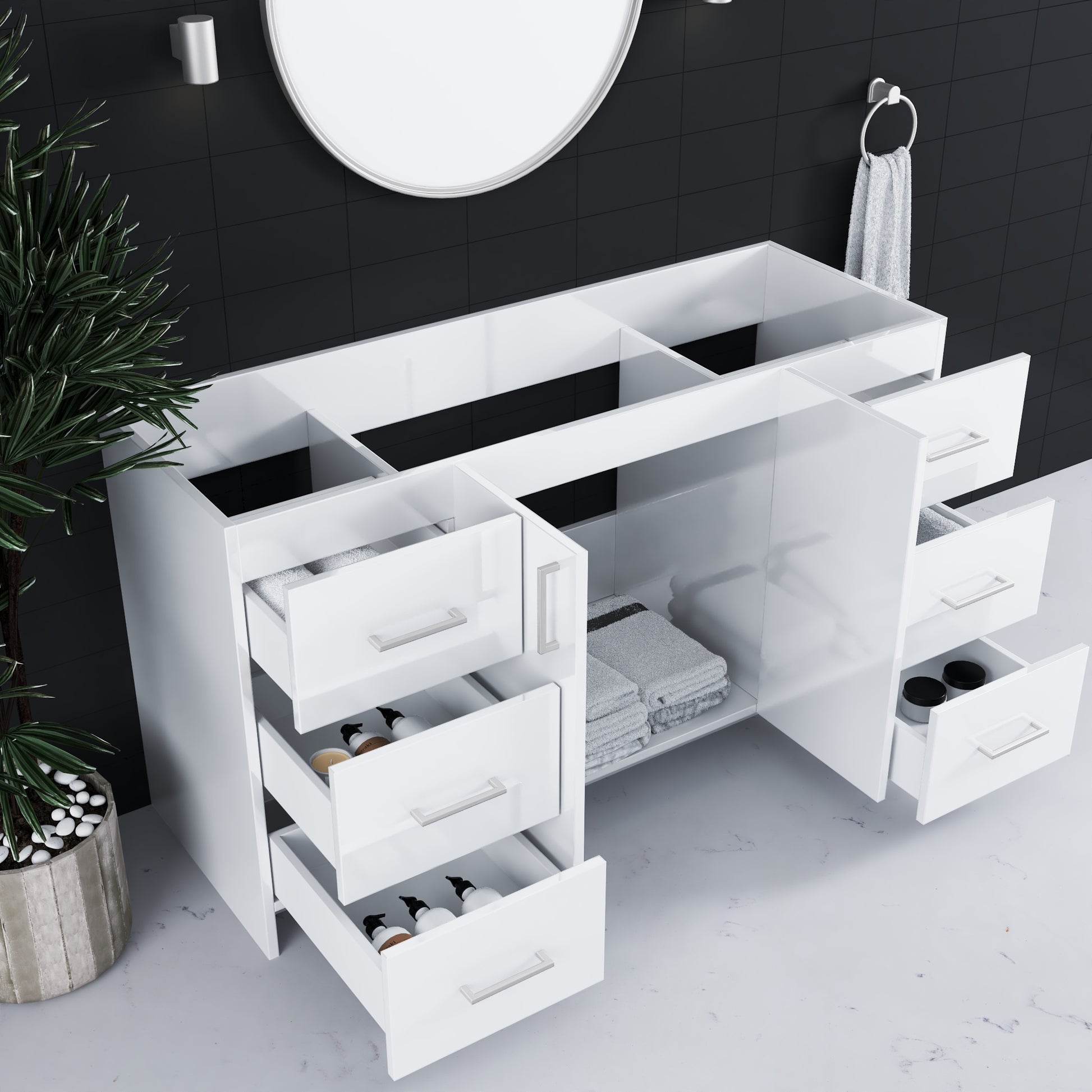 - Silent Operation Drawers: Soft-closing feature for a tranquil, luxurious bathroom experience.